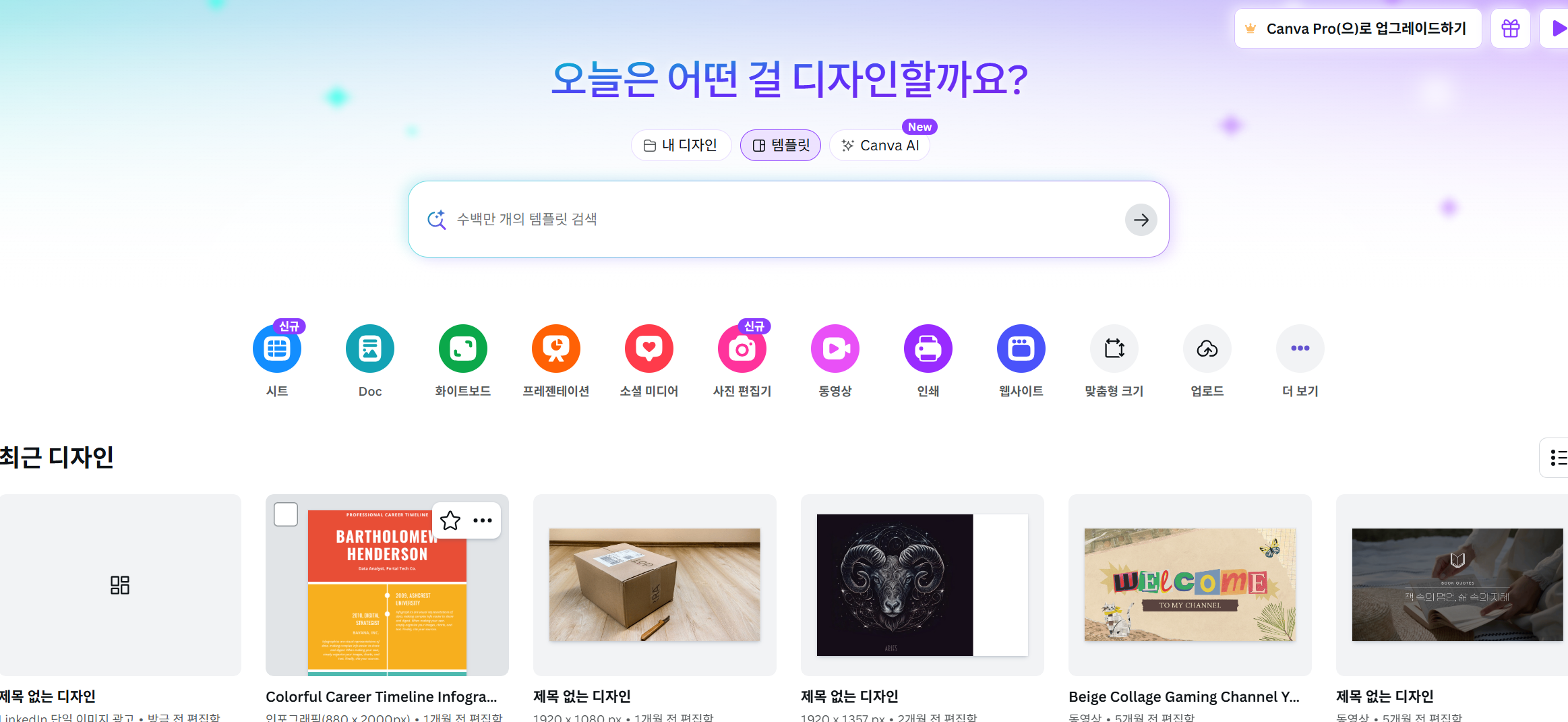 - Canva 추천 대상: SNS 콘텐츠, 유튜브 섬네일, 발표자료, 이력서 등을 간편하게 만들고 싶은 분